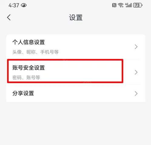 2、在设置界面中点击账号安全设置的选项。