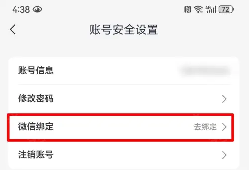 3、然后点击微信绑定的选项后即可进行绑定。