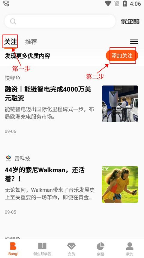 如何使用创业邦app了解自己感兴趣的资讯内容?