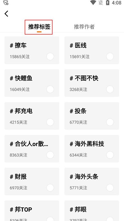 2、根据自己喜好在“推荐标签”选择对应话题。