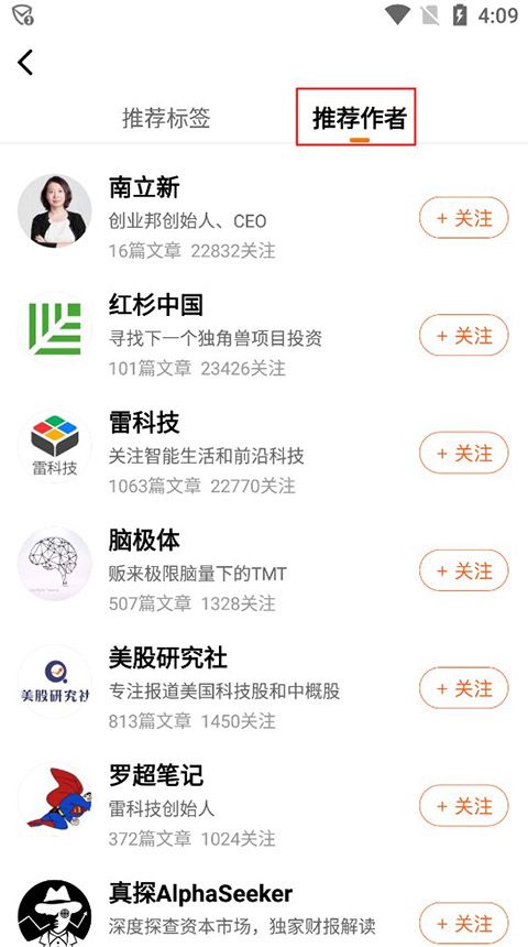 3、在“推荐作者”自行选择感兴趣的作者。