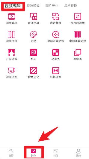 3、在制作页面,用户可以使用视频编辑、字幕、拼接、贴纸、转场、画中画等多样工具,帮助快速完成视频的专业化处理。