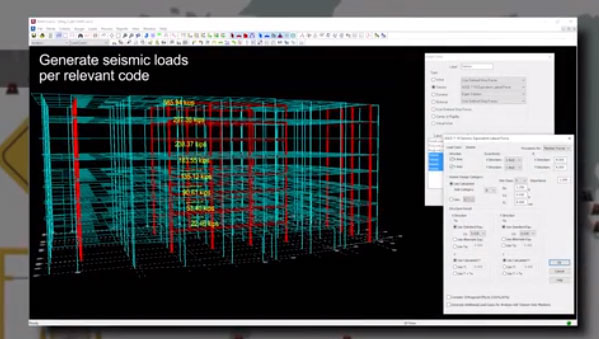 使用内置载荷生成器将规范要求的风力和抗震载荷应用于结构中。基于结构几何图形、批量和选定建筑规范条款,自动计算相关载荷参数,而无需单独手动计算。使用载荷组合生成器将这些横向载荷工况与重力和其他类型的负荷组合起来。