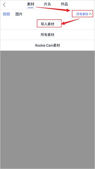 2、点击所有素材】,选择导入素材】。