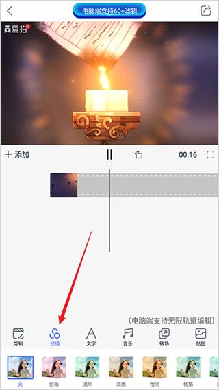 6、点击滤镜】,可以给视频添加滤镜效果。