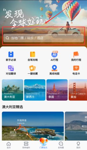 2、门票玩乐板块支持在线选购景点门票与当地体验项目的快捷购买。