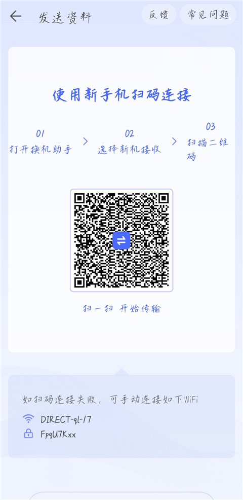 3、会生成一个二维码,需要用新手机上的腾讯换机助手扫描。