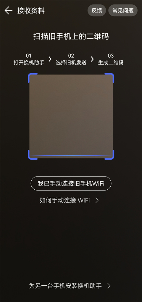 只有两部手机都安装了换机助手才能进行资料传输。