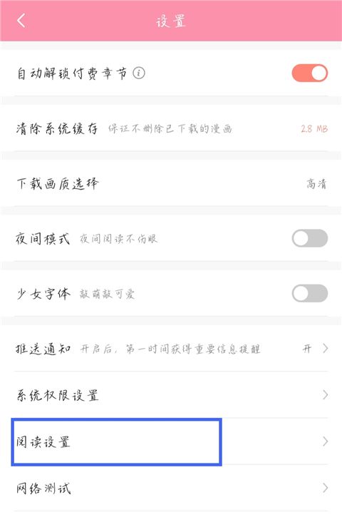 3、点击【阅读设置】。