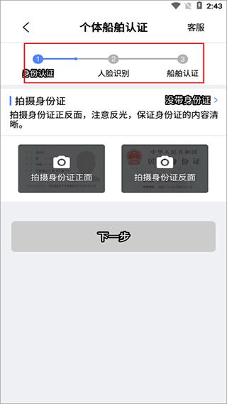 2、进入软件到平台后完成个体船舶通过个人的实名认证才可以进行使用;