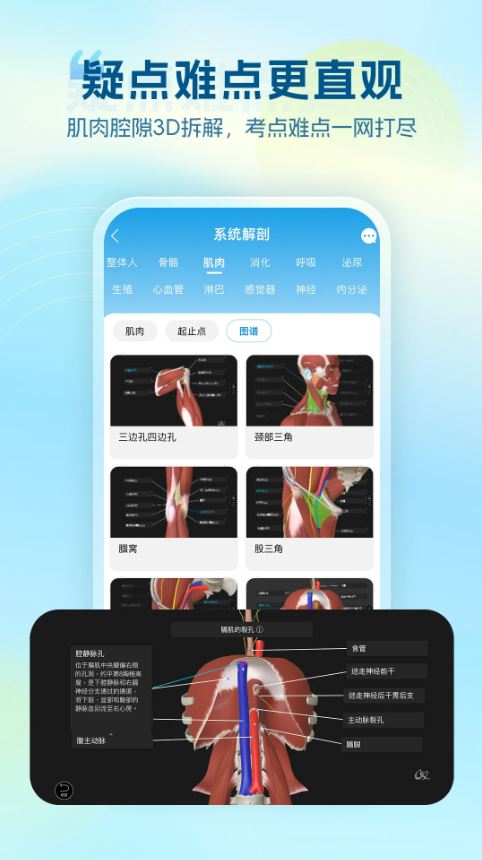 2、解剖重难点专栏、12对脑神经、血液循环独特的资源让用户轻松学习。