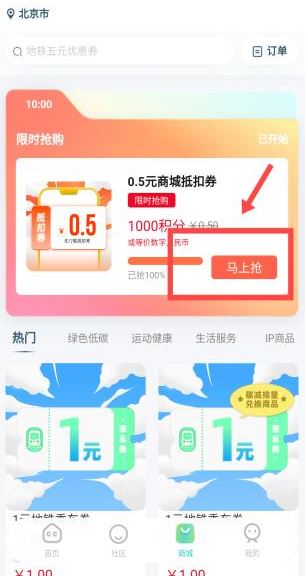 低碳商城提供乘车券、ip文创等多种低碳专享权益,使用碳减排量和日常积分均可兑换。