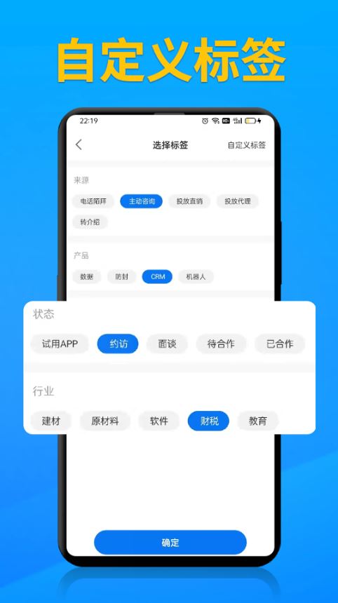 CRM,移动CRM,标签自定义,收藏、跟单提醒、报表。