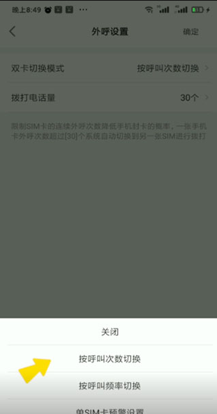 2、进入后,设置双卡切换模式下的呼叫次数频率。