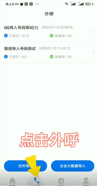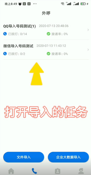 4、进入外呼,点击导入任务。
