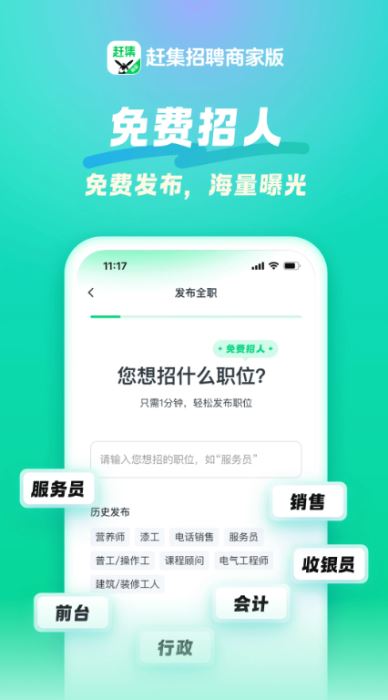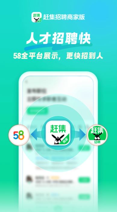 赶集招聘商家版是58同城及赶集直招联合推出的专业级招聘平台,简历库由58同城、赶集直招、英才直聘三平台接入,您可同步邀约多平台求职者,帖子可获得更多曝光,招人更快更方便。