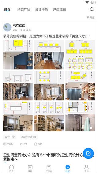 4、在社区页面可以看到其他用户的分享和改造效果图纸,还可以点赞、收藏评论哦!