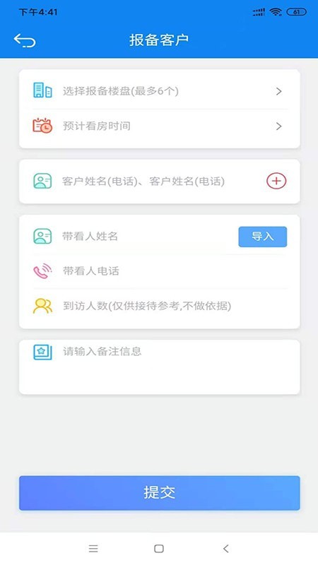 2、客户报备,根据客户的房产需求即可进行报备信息保存;