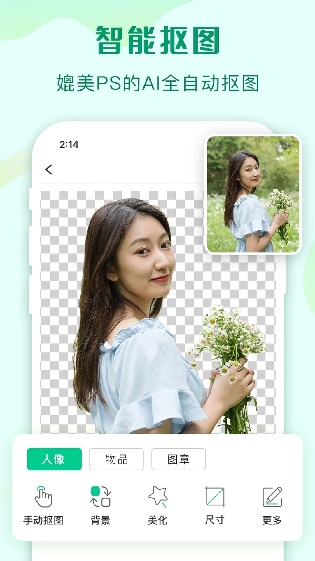 1、【智能抠图】—自动识别保留区域,快速去除图片背景。