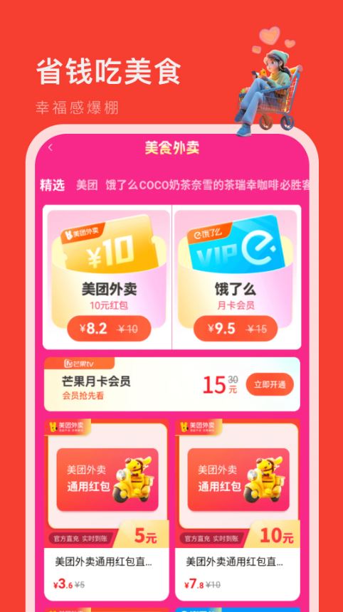 不仅有购物优惠搜索,能让用户获取全网各类商品的优惠,还提供外卖会员超值卡券。在生活服务方面,涵盖出行、健身、网盘等领域的优惠,几乎覆盖日常生活消费的多个场景。