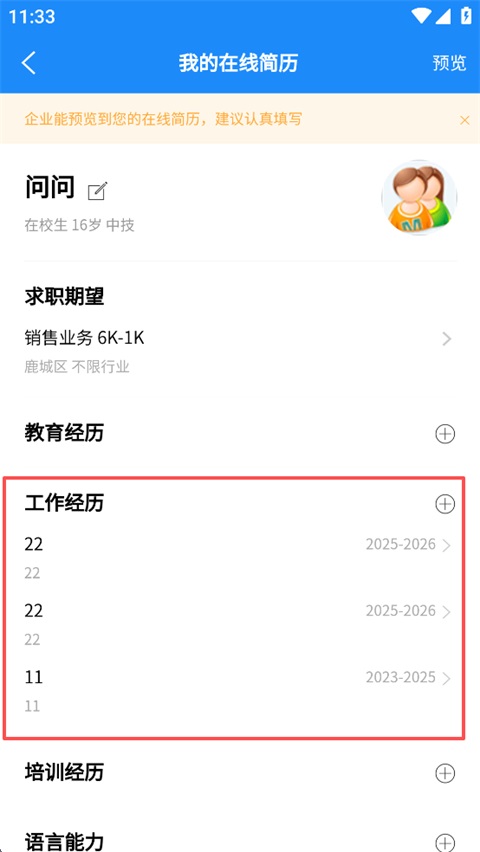 温州招聘网app怎么修改工作经历