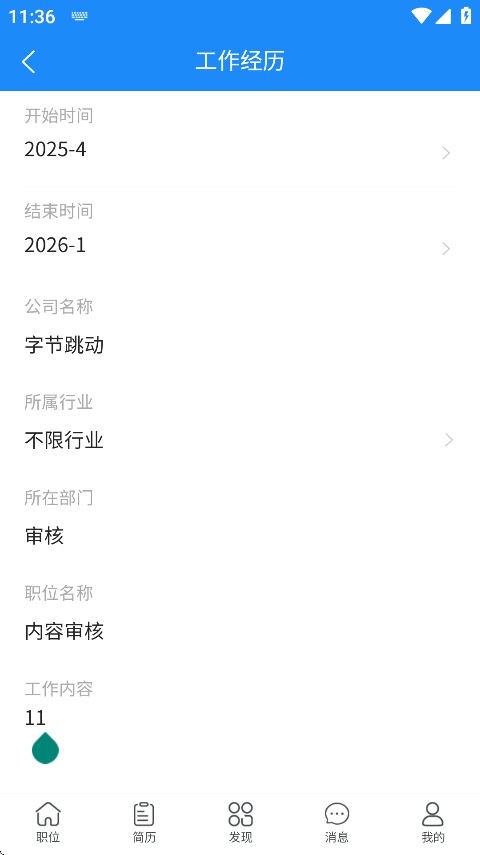 5、编辑好后点击【保存】,返回简历总览就可以看到已经修改后的工作经历了;