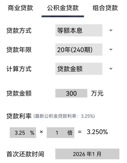 5、商业贷款的计算方式可以更换成住房面积,下方会让你输入单价、面积、首付比例等,同样的点击【开始计算】。
