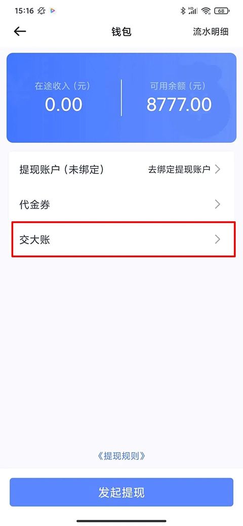 1、打开司机端APP,进入钱包,点击交大账