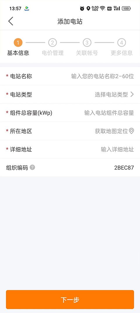 2、之后就可以在这里填写电站的所有信息然后一直下一步就可以了。