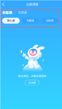 3、通过课程中心,可筛选未结课/已结课状态,浏览核心课、专题课及训练营内容。
