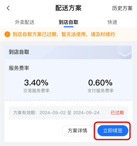 2、在【到店自取】处进行方案签约或者续签。