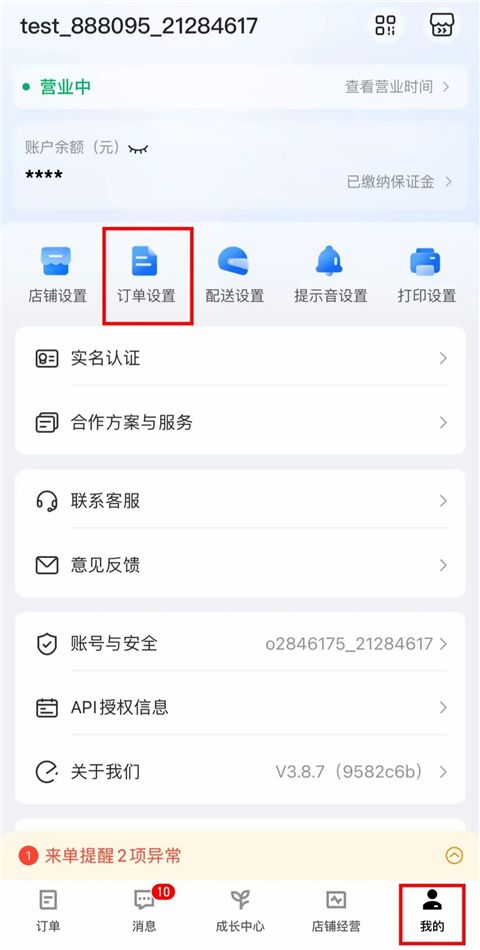 3、然后返回【我的】页面,点击【订单设置】。