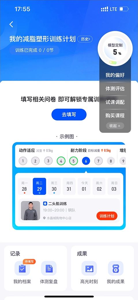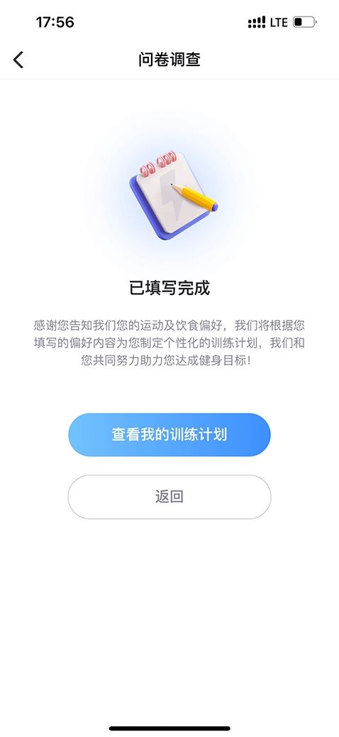 4、填写完成后系统就能够为你自动生成计划,点击查看我的训练计划就可以执行了。