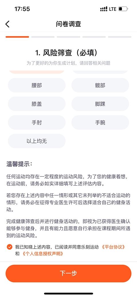 3、根据页面提示填写问卷调查,点击下一步按钮。