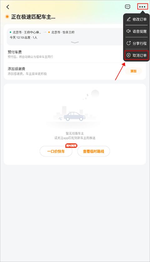 滴答出行app怎么取消行程订单