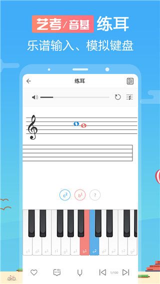 1、乐理部分:五线谱乐谱知识入门必须,帮助你学习各种音乐理论知识。也可帮你学习如何快速准确的读乐谱和写乐谱的能力。包含多种乐理练习工具,利用这些工具可以帮助你提高识别乐谱能力,构建乐谱能力,熟悉钢琴键盘,提高耳朵对声音的辨别能力。通过不断的练习,你可以快速提高你阅读乐谱的速度和准确度。