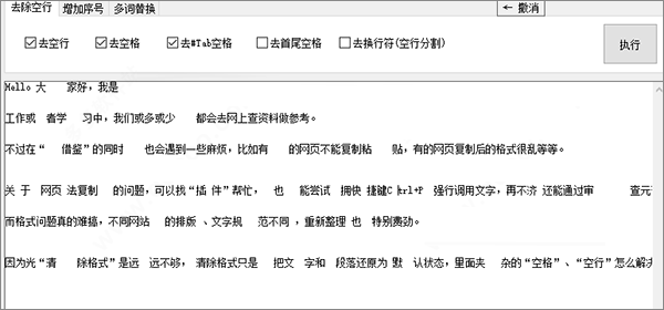3、把一段很乱的文字复制到程序框内,并勾选对应功能即可一键更改