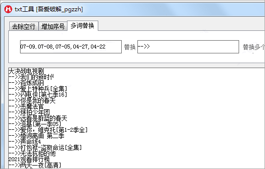 1、TXT工具可以帮助用户去除空行、增加序号、多词替换