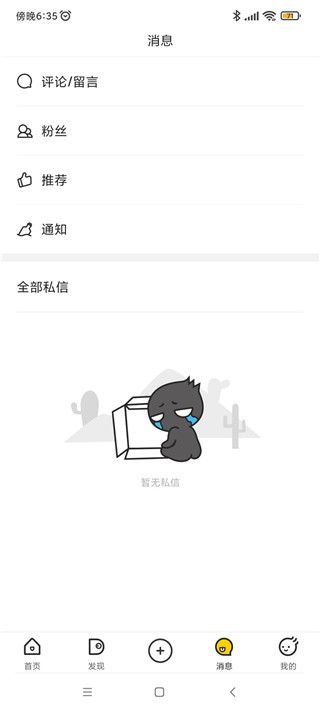 4、消息界面可以查看评论留言,新增粉丝和通知等内容。