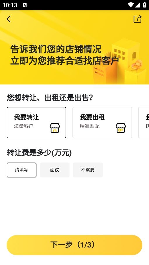4、点击我要转让,填写转让费;接着下一步