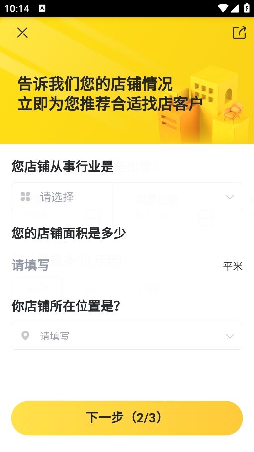 5、填写你的店铺的基本信息,例如店铺面积,位置等