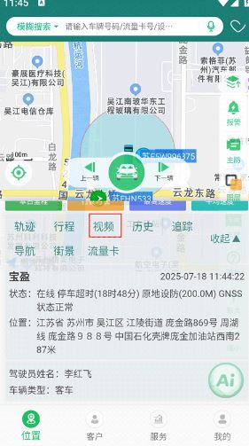 2、下方即可查看该车牌对应的车辆行驶回放,还有具体的位置。