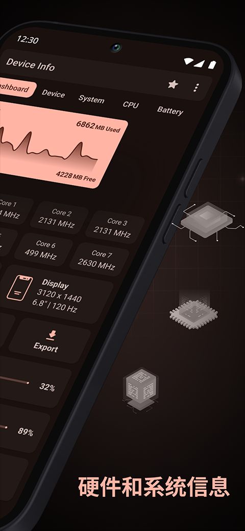 Device Info是一款专为Android 设备设计的综合型硬件与系统信息检测应用,旨在帮助用户快速掌握设备核心参数与运行状态。通过简洁直观的界面,它能全面展示处理器型号、核心架构、GPU 版本、内存容量、存储类型(如 UFS/eMMC)等硬件细节,同时提供系统版本、安全补丁、内核信息等软件数据。无论是普通用户想了解设备配置,还是开发者调试应用,均可通过它快速获取关键信息。