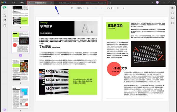 除此之外,UPDF软件在保持原有文档格式的情况下,能够保证极高的正确率, 用户也可以通过关键词搜索,快速找到你要阅读的内容,或者是通过书签的方式让你的阅读体验有质的提升,并且整个软件采用了浏览器的标签的形式,支持同时打开多个PDF文件操作,还为各位用户提供了独有的幻灯片播放模式,让你可选择直接播放或以演讲者模式播放内容,再加上独有的文本拖拽能力,能将网页或其它文档中文字内容直接拖拽到 PDF 文档中,并能保持原文本的样式,这一点是大大提高了效率,比一般的复制粘贴更简单便捷,有需要的朋友欢迎前来下载。