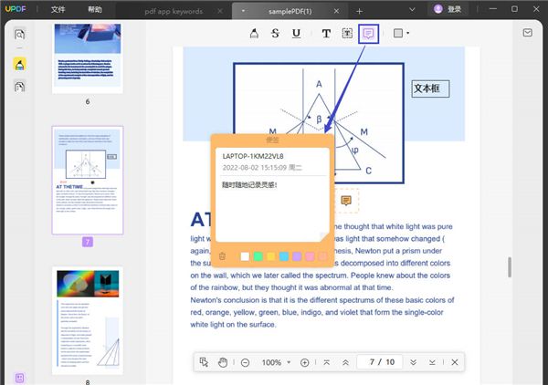 3、便签: 要添加便签,您需要单击便签图标。然后单击您的PDF文档以将其放置。双击便签图标,然后输入内容。