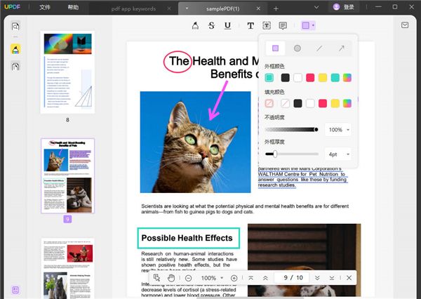 UPDF 支持绘制矩形,椭圆形,直线,和箭头的形状。