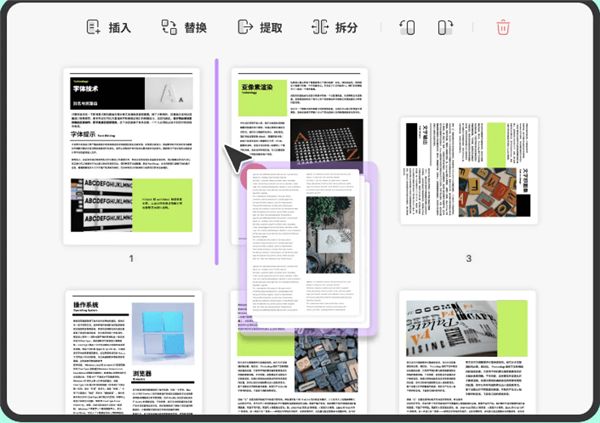 可以速添加、删除、旋转、替换、提取或重新排列PDF页面。也是通过任意拖动PDF页面的方式就可以快速重新排序页面,非常方便。