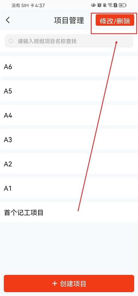 3、在项目管理页面,点击右上角的【修改/删除】按钮;