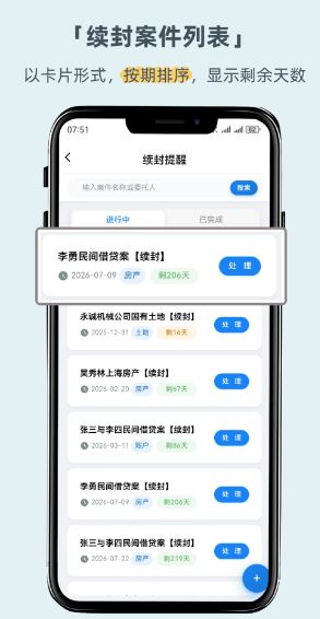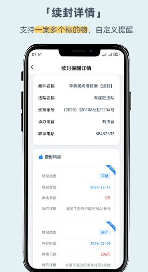 支持用户有效进行续封提醒,就可让你实时查看财产保全的续封提醒日期,更好的掌握。
