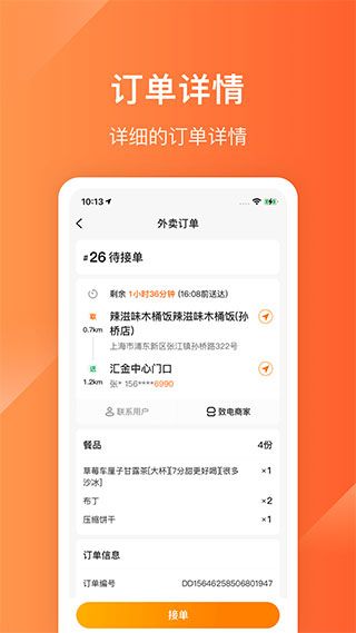 2、你可以随时查看订单详情,合理规划您的送餐路线。